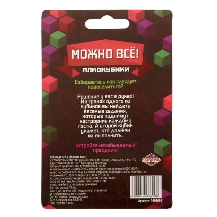 Купить кубик "можно все", алкокубики для принятия решений от 60 руб. с доставкой до пункта выдачи в Шелехове. Интернет магазин ДекаМаркет. Оплата при получении.